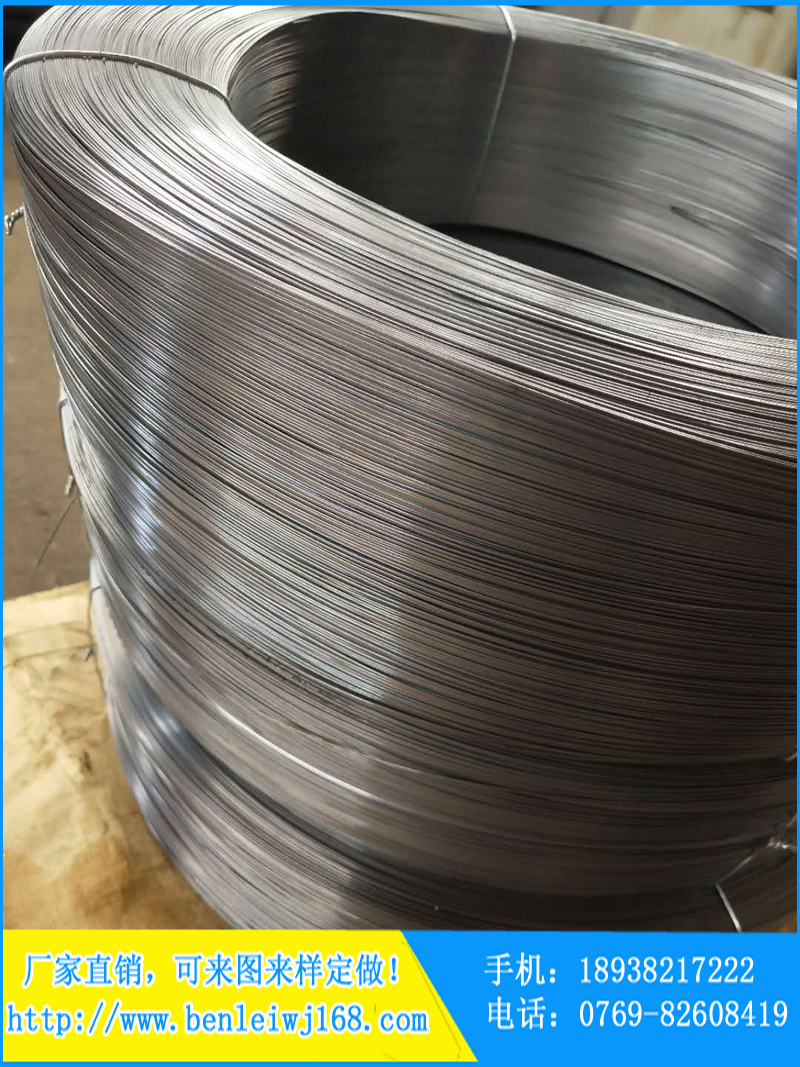 我公司加工碳鋼扁線,高碳鋼扁絲:手環(huán)鋼絲壓扁機(jī)將鐵絲、鋼絲、冷拉絲、低碳鋼,不銹鋼,銅,鋁,不銹鋼等資料的圓線壓成扁形,方形,半圓形等形狀。我公司的不銹鋼扁線性能特色:軋線圓輥選用優(yōu)質(zhì)鎢鋼或鉻鋼制成特別處理,運(yùn)用壽命長(zhǎng),成型后的線材外表潤(rùn)滑,尺度準(zhǔn)確,產(chǎn)品規(guī)格齊全,材質(zhì)多樣。